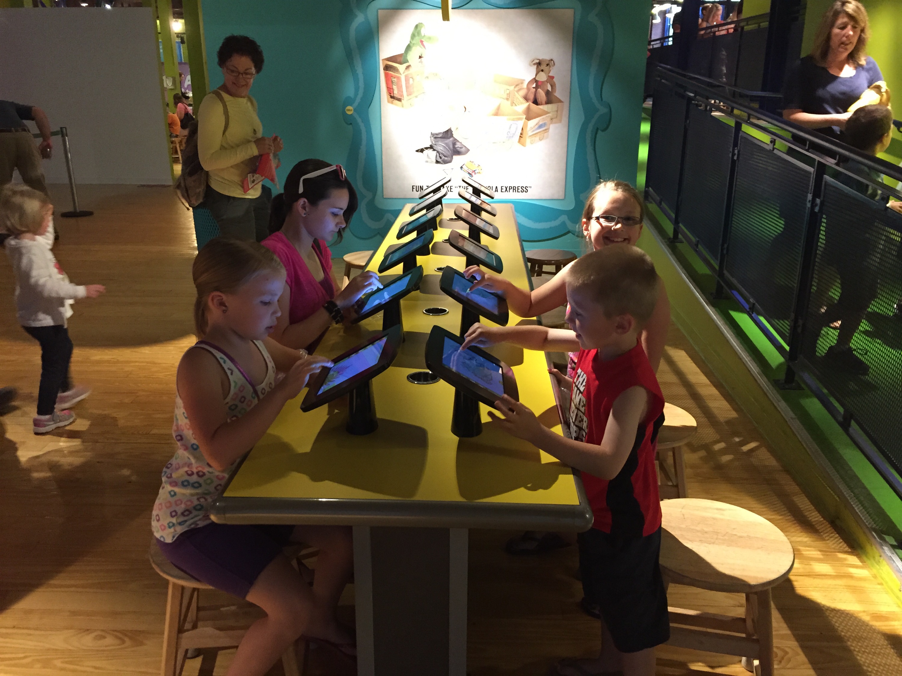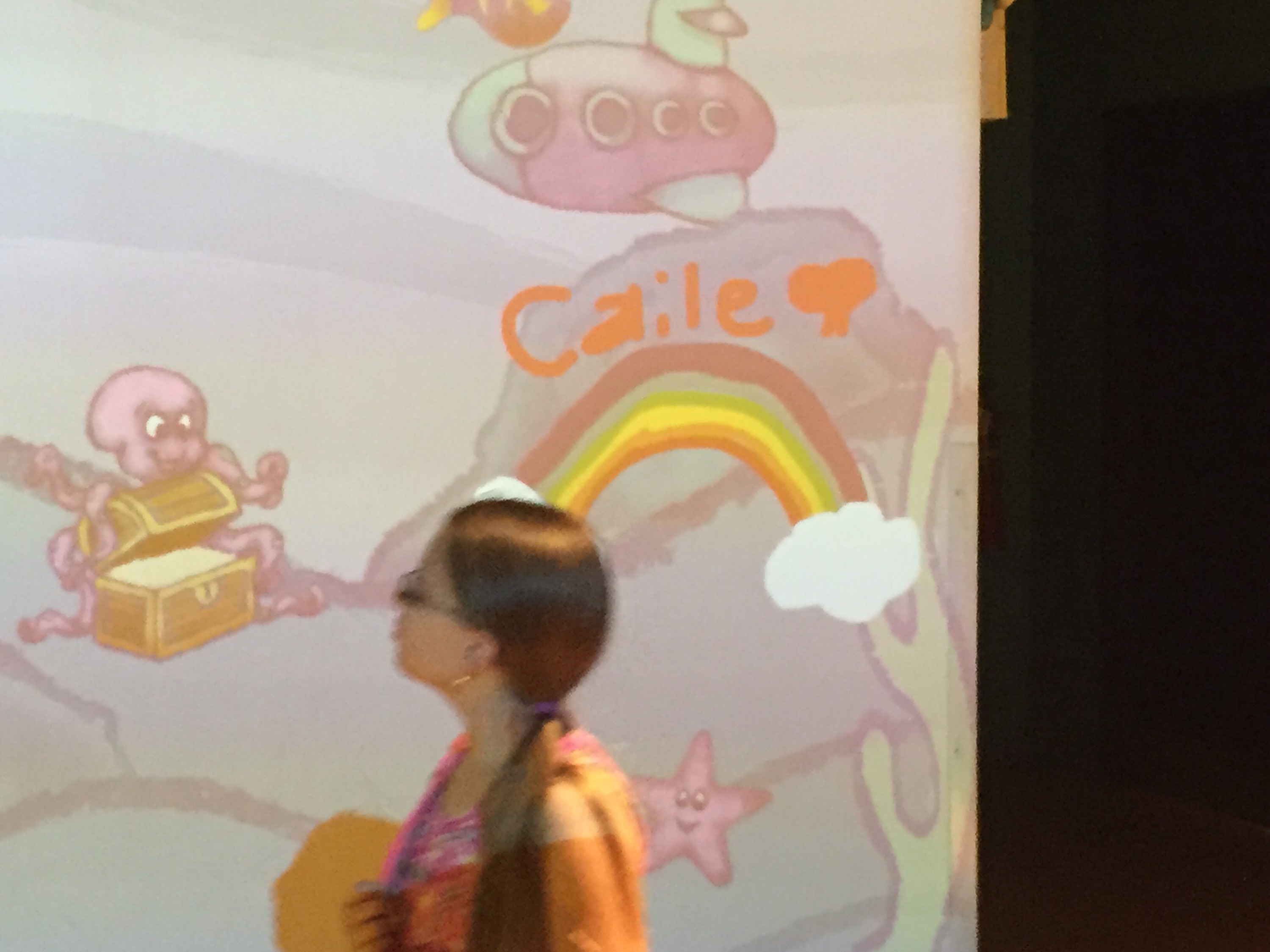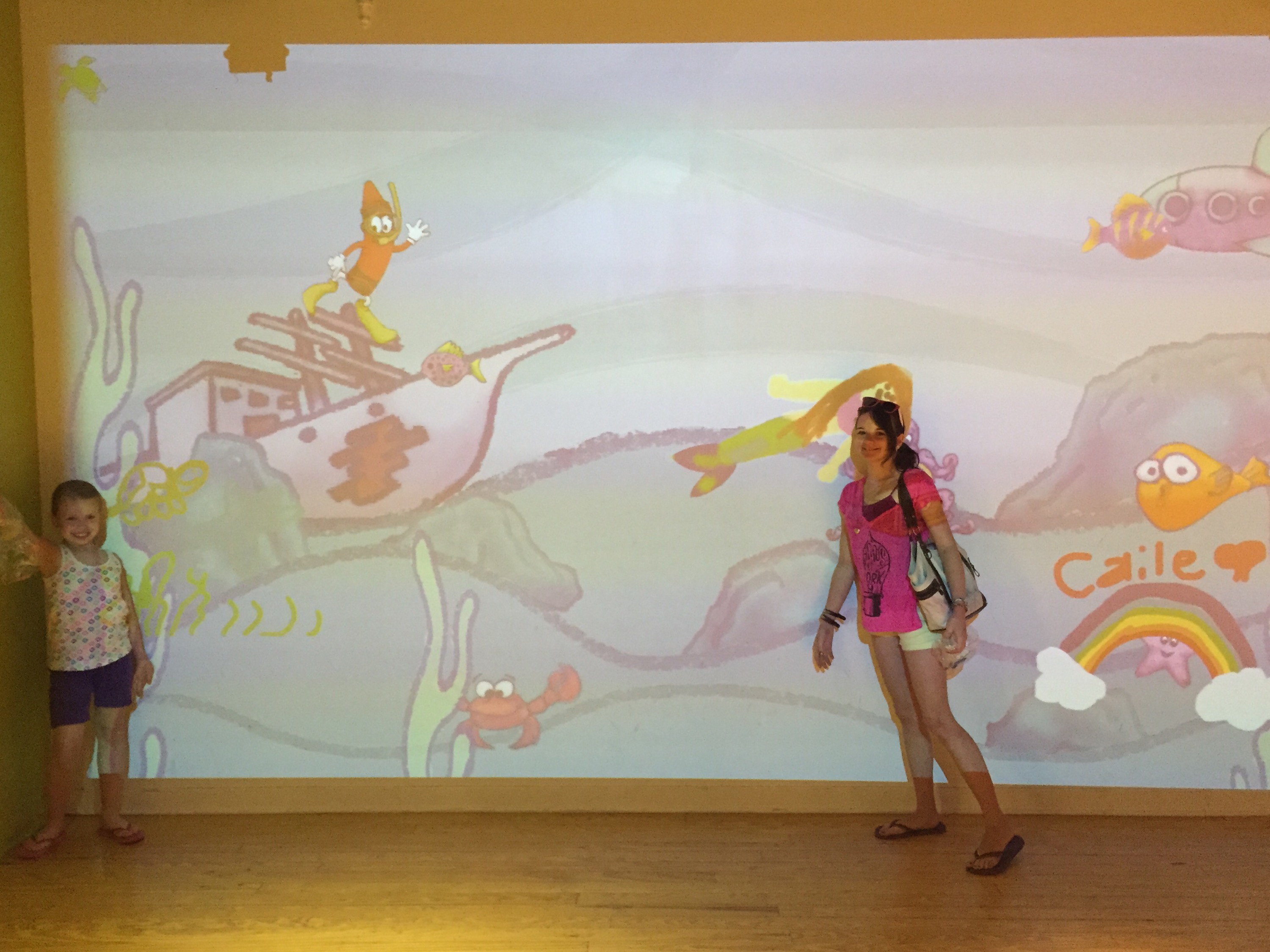 Some of the other fun things was a large projection area that had a scene on the wall. There was a large group of tablets you could draw an image or colour pictures and they would then show up in the scene.